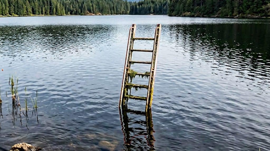 Marcus Beale had hiked the trails around Silver Creek Lake in Oregon dozens of times. He knew every bend in the path, every fallen log, every lookout point. But on a cool Thursday morning in early October, something caught his eye that he had never noticed before. Near the southern shore, about ten feet from the bank, a rusty metal ladder was sticking straight out of the still water.