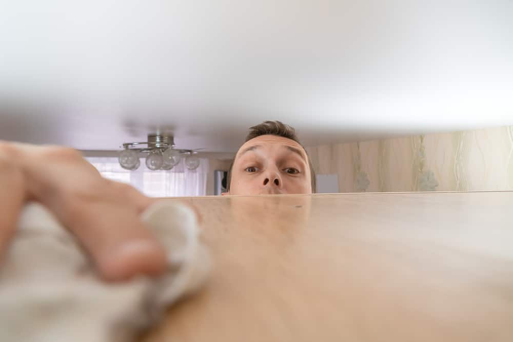- Dust top to bottom: Always start high (shelves, fan blades) and finish low (floors).