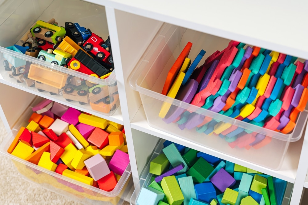 Storage works best when it supports daily routines. Labeling the bins on toy storage shelves teaches children where things belong. Simple picture labels work well for younger kids, while written labels help early readers practice responsibility.
