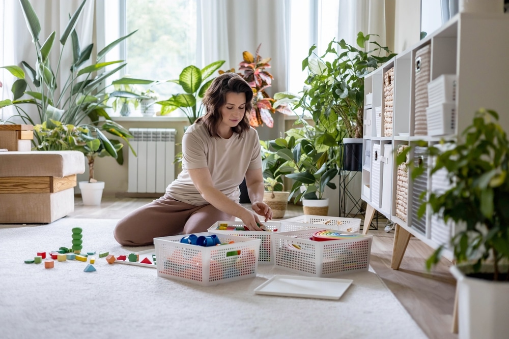 Avoid primary-colored plastic unless it genuinely matches your style. The goal is to make toy organization feel integrated, not improvised.